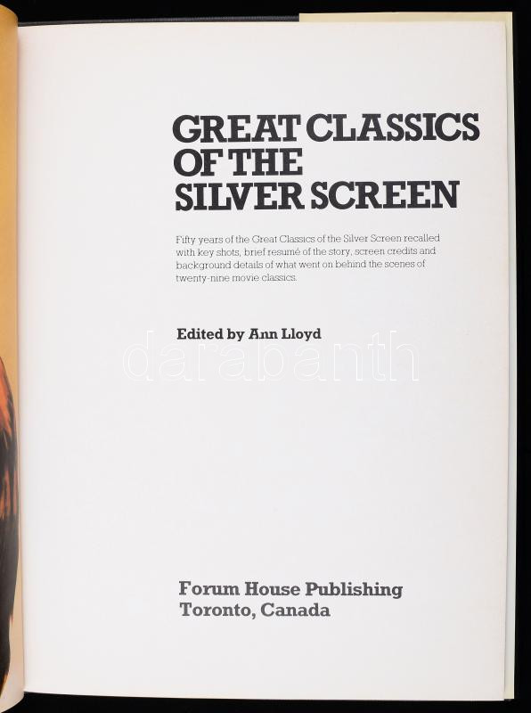 Leírás: Lloyd, Ann: Great Classics of the Silver Screen. Toronto, 1982, Forum House Publishing. Kiadói kartonált kötés, papír védőborítóval, jó állapotban.