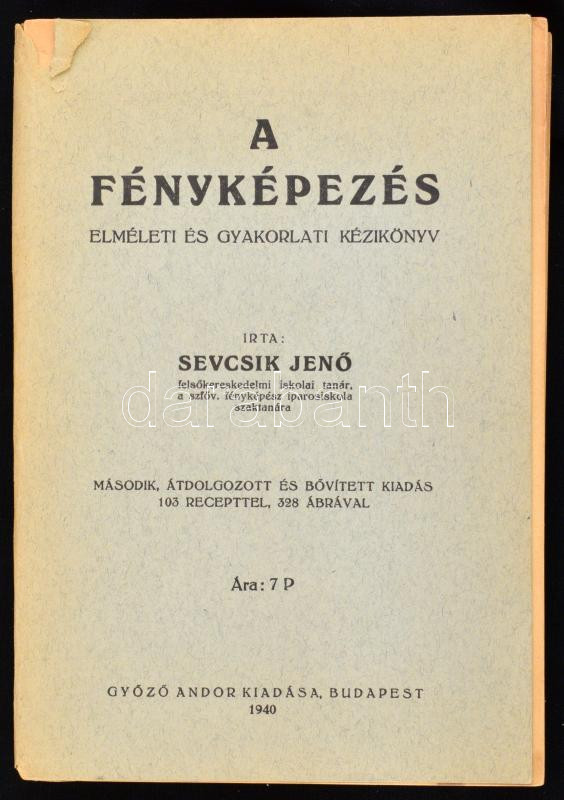 Sevcsik János: A fényképezés. Elméleti és gyakorlati kézikönyv. Bp., 1940, Győző Andor, 420 p. 2., átdolgozott és bővített kiadás. Kiadói papírkötés, szakadt borítóval és gerinccel.