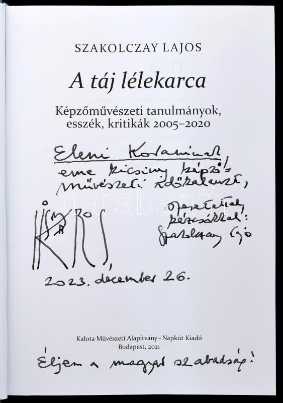 Leírás: Szakolczay Lajos: A táj lélekarca. Képzőművészeti tanulmányok, esszék, kritikák 2005-2020. A szerző, Szakolczay Lajos (1941- ) Széchenyi-díjas irodalomtörténész, irodalom- és művészetkritikus, szerkesztő által DEDIKÁLT példány! Bp., 2023, Kalota Művészeti Alapítvány - Napkút Kiadó. Kiadói kartonált papírkötés.