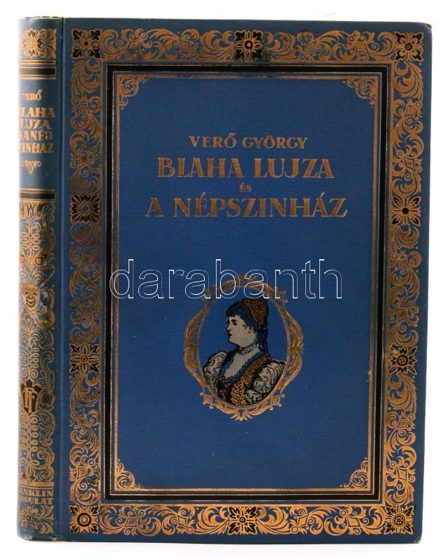 Verő György: Blaha Lujza és a Népszínház Budapest színi életében. Rákosi Jenő előszavával. Bp., [1926], Franklin-Társulat, 1 (címkép) t.+ 328 p. Szövegközti képekkel illusztrálva. Kiadói dekoratív, aranyozott egészvászon-kötés, jó állapotban.