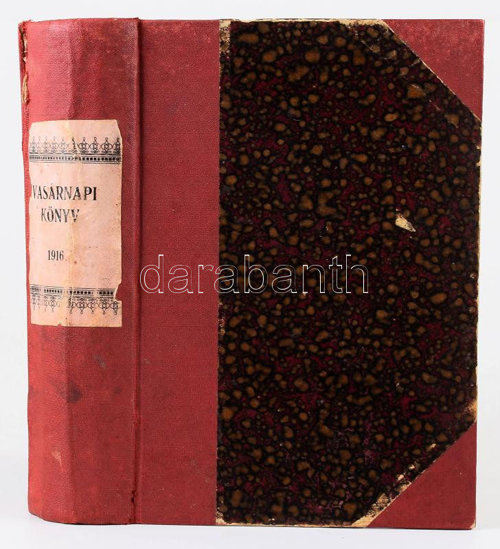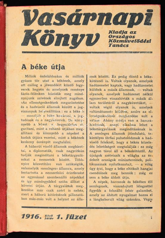 1916 Vasárnapi Könyv 1916. évi számai egybekötve, kiadja az Országos Közművelődési Tanács. Benne számos érdekes cikk és fotó a háborúval kapcsolatban. Félvászon-kötésben.