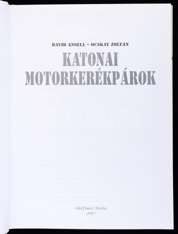 David Ansell-Ocskay Zoltán: Katonai motorkerékpárok. Bp.,2007, Oldtime... https://www.darabanth.com/hu/498-Gyorsarveres/498.0/Konyvek/Konyvek-Militaria-Katonasag~2000125/David-Ansell-Ocskay-Zoltan-Katonai-motorkerekparok-Bp-2007-Oldtimer-Media-Kiadoi-kartonalt~II3396240