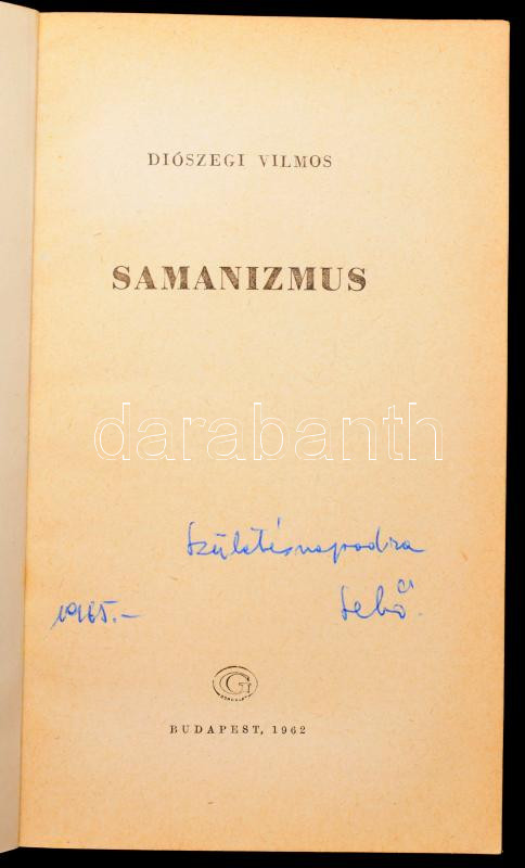 Diószegi Vilmos: Samanizmus. Bp., 1962, Gondolat. Kiadói papírkötés, a... https://www.darabanth.com/hu/498-Gyorsarveres/498.0/Konyvek/Konyvek-Tarsadalomtudomany~2000131/Dioszegi-Vilmos-Samanizmus-Bp-1962-Gondolat-Kiadoi-papirkotes-ajandekozasi-sorokkal-~II3402092