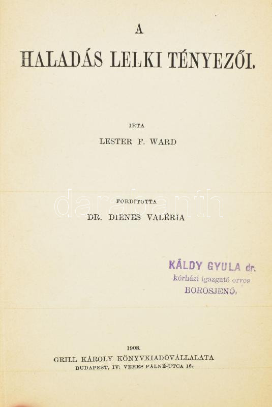 Lester F. Ward: A haladás lelki tényezői. Fordította: Dr. Dienes Valér... https://www.darabanth.com/hu/498-Gyorsarveres/498.0/Konyvek/Konyvek-Tarsadalomtudomany~2000131/Lester-F-Ward-A-haladas-lelki-tenyezoi-Forditotta-Dr-Dienes-Valeria-Tarsadalomtudomanyi~II3344105
