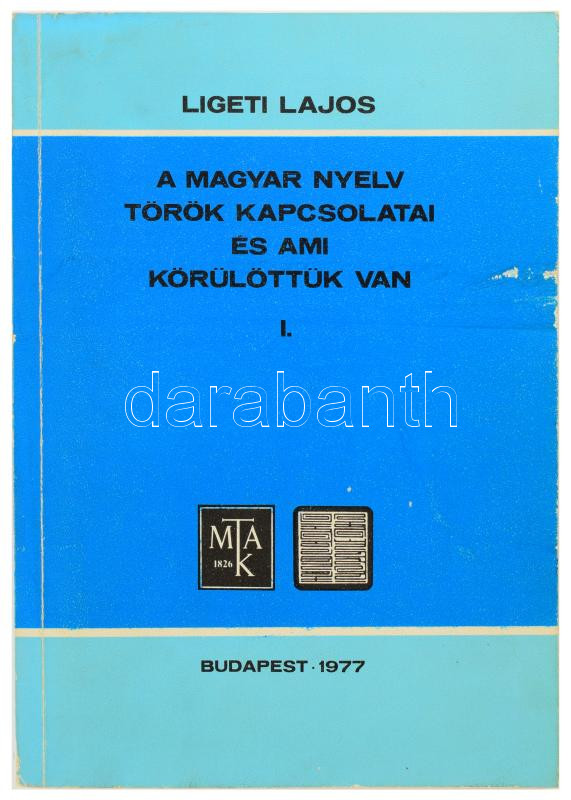 Ligeti Lajos: A magyar nyelv török kapcsolatai és ami körülöttük van I... https://www.darabanth.com/hu/498-Gyorsarveres/498.0/Konyvek/Konyvek-Tarsadalomtudomany~2000131/Ligeti-Lajos-A-magyar-nyelv-torok-kapcsolatai-es-ami-korulottuk-van-I-Bp-1977-Kiadoi-p~II3400874