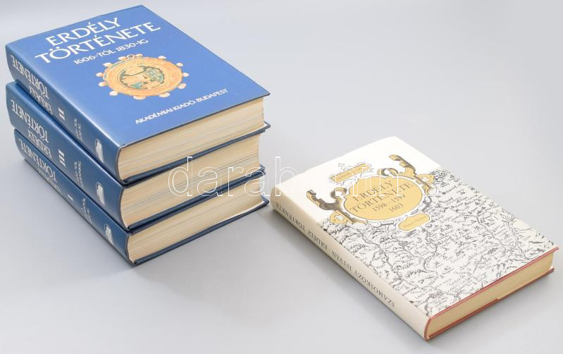 Erdély történetét bemutató össz. 4 kötet: Erdély történeteI-III. kötet. Szerk.: Köpeczi Béla. Bp., 1986, Akadémiai Kiadó. Első kiadás. Kiadói egészvászon kötésben, kiadói papír védőborítóban, jó állapotban. + Szamosközy István: Erdély története. (1598-1599, 1603). Bp., 1977, Magyar Helikon. Második kiadás. Kiadói egészvászon-kötés, kiadói papír védőborítón apró gyűrődésekkel, jó állapotban.