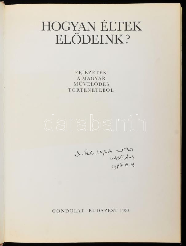Hanák Péter (szerk.): Hogyan éltek elődeink? Fejezetek a magyar művelődés történetéből. Bp., 1980, Gondolat. Ajándékozási sorokkal. Kiadói egészvászon kötés, papír védőborítóval, kissé kopottas állapotban.