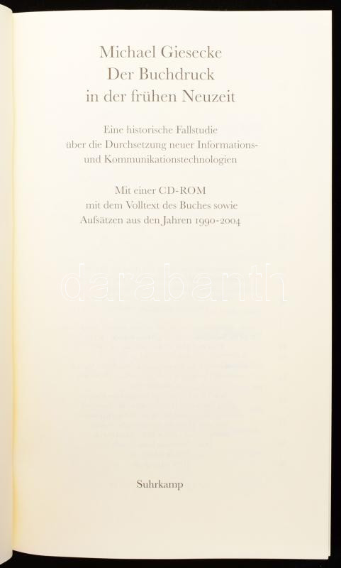Michael Giesecke: Der Buchdruck in der frühen Neuzeit. Eine historische Fallstudie über die Durchsetzung neuer Informations- und Kommunikationstechnologien. Frankfurt am Main, 2006, Suhrkamp, 957 p. Német nyelven. Kiadói papírkötés, CD-melléklettel.