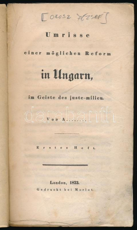[Orosz József, balásfalvi] A...: Umrisse einer möglichen Reform in Ungarn im Geiste des Juste-milieu. Erstes Heft.
