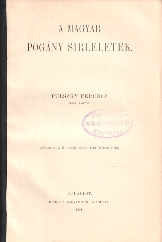 Budapest, 1891. Magyar Tudományos Akadémia (Franklin-Társulat ny.) 21 + [1] p. Egyetlen önálló kiadás.