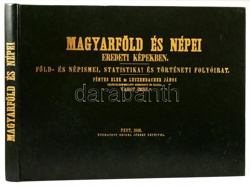 Vahot Imre: Magyarföld és népei eredeti képekben. Föld- és népismei, statistikai és történeti folyóirat. Fényes Elek és Luczenbacher János felügyelete mellett szerk. és kiadja: - - . Bp., 1984, ÁKV. Reprint kiadás. Az 1846. évi Beimel József kiadás hasonmása. Kiadói aranyozott műbőr-kötés.