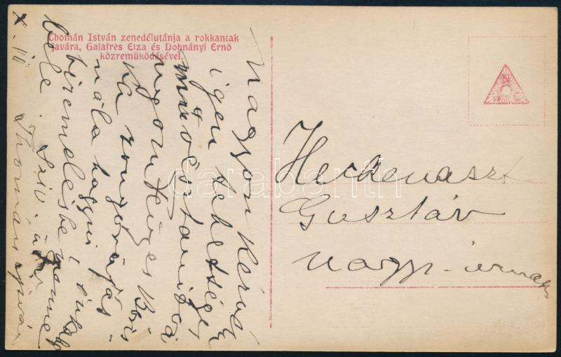 Thomán István (1862-1940) zongoraművész, Liszt Ferenc egyik kedvenc tanítványa saját kézzel írt és aláírt képeslapja az ő zenedélutánját ábrázoló lapon, szép állapotban