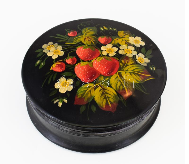 Kézzel festett epermintás fém doboz, d: 14,5 cm