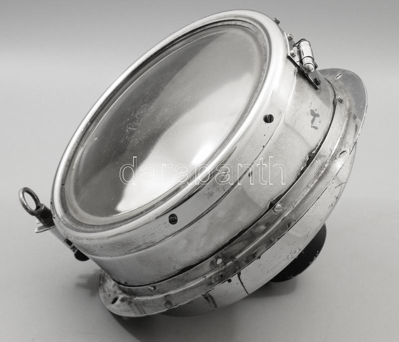 Leírás: cca 1970, EV típusú metró kocsi fényszóró, krómozott vas, kopással, d: 29 cm, m: 19 cm