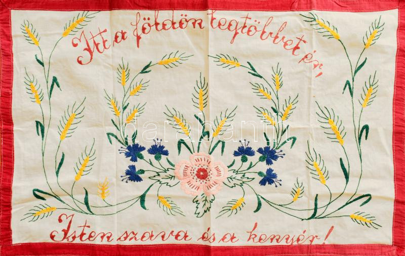Kézzel hímzett konyhai falvédő, "Itt a földön legtöbbet ér, Isten... https://www.darabanth.com/hu/498-Gyorsarveres/498.0/Kulfoldi-filatelia-es-postatortenet/Design-divat~8/Kezzel-himzett-konyhai-falvedo-Itt-a-foldon-legtobbet-er-Isten-szava-es-a-kenyer-felir~II3401104