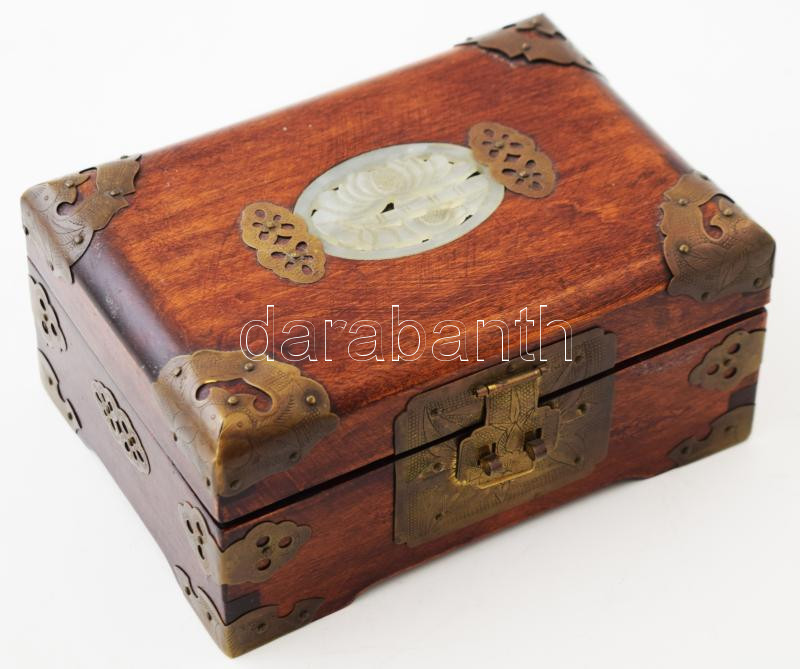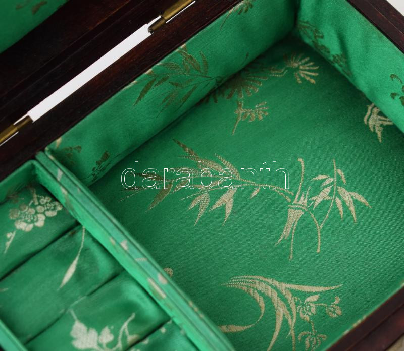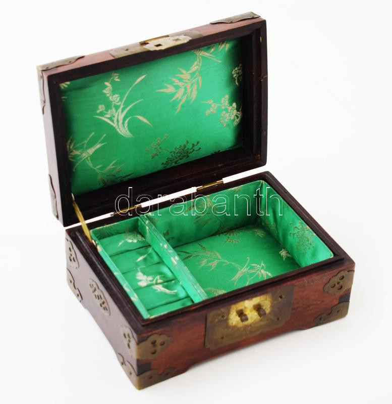 Leírás: Kínai fa ékszertartó doboz, réz veretekkel, 17x12x8 cm