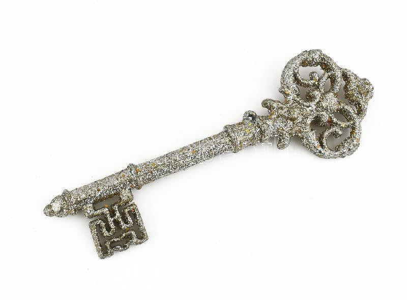Leírás: Kulcsalakú flitteres karácsonyfadísz, h: 15 cm