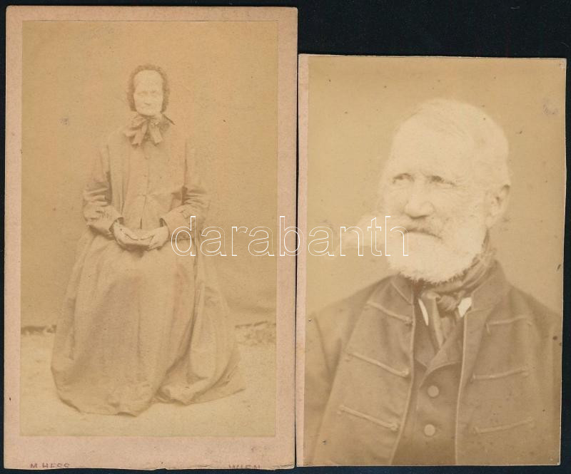 Leírás: cca 1870-1880 Szveda Antal és felesége Soóky Erzsébet, 2 db vizitkártya, Atelier M. Hess, Wien (Bécs), vágottak, 9x6 cm és 10,5x6,5 cm