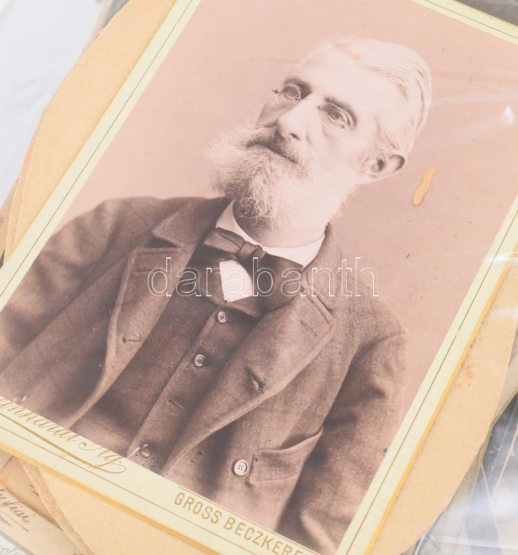 cca 1870-1910 Vegyes családi fotó tétel, a budapesti műtermek (közte 1 db pesti Borsos József) fotói mellett felvidéki (Eperjes, 4 db Divald Károly fotó, Bojárszky és Holénia; Kassa, Kemény JenÅ‘), bécsi (Angerer), szegedi (2 db Brenner Testvérek, Lintner Ferenc), zombori - szolnoki (1 db Singer S.), nagybecskereki (Meinhardt Ag.), valamint debreceni (Némethi József) keményhátú fotóival, összesen 24 db és 3 db nagyméretű fotó, az egyiken késÅ‘bbi (1920-1930 kr.) 2 db fotólappal, a fotók között a Bielek-család néhány nevesÃtett fotójával (Bielek Vilmos Nagybecskerek, Bielek László Eperjes...stb.) Változó állapotban, közte sérült és foltos is, 10x6 cm és 25x33 cm.
