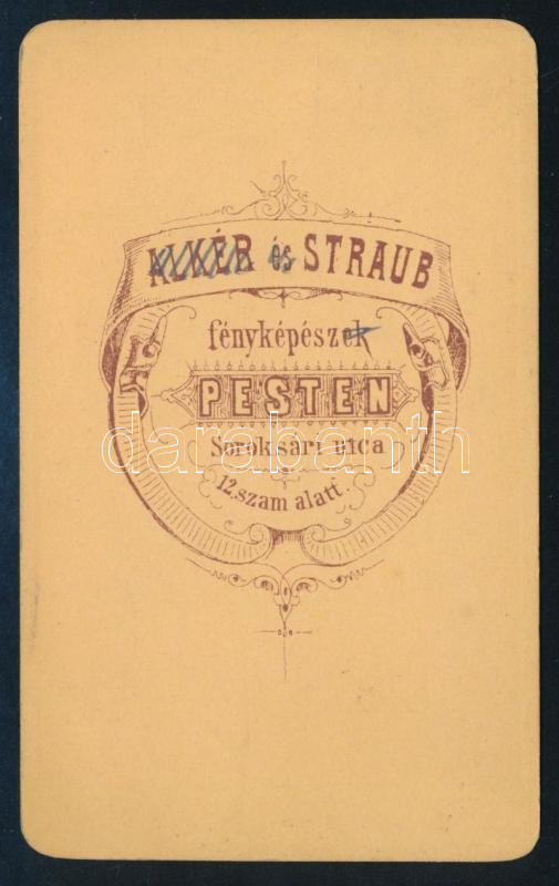 Leírás: cca 1870 Elegáns, kalapos hölgy portréja, vizitkártya Alkér és Straub pesti műterméből (előbbi ceruzával áthúzva a verzón), 10x6 cm
