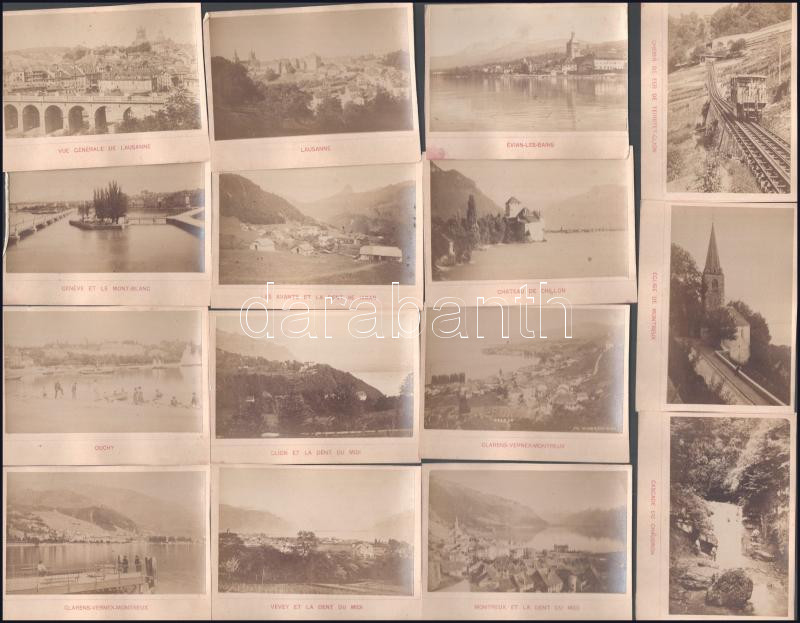 Leírás: cca 1880 15 db Svájci tájakat ábrázoló fénykép: Lausanne, Mont Blanc, Geneve, Montreux, stb / 15 photos of Switzerland cities and views 10x8 cm