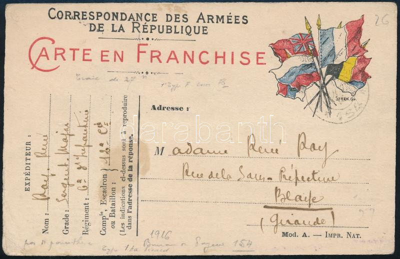 1916 Tábori posta lap négy zászlós grafikával belföldre https://www.darabanth.com/hu/498-Gyorsarveres/498.0/Kulfoldi-filatelia-es-postatortenet/Franciaorszag~1500087/1916-Tabori-posta-lap-negy-zaszlos-grafikaval-belfoldre~II3248268