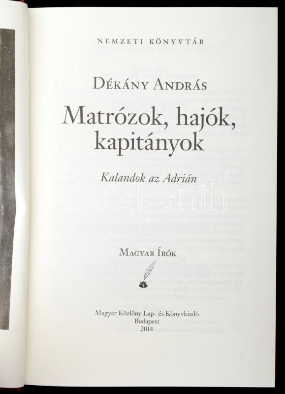 Leírás: Dékány András: Matrózok, hajók, kapitányok. Kalandok az Adrián. Nemzeti Könyvtár 33. Bp., 2014, Magyar Közlöny. Kiadói kartonált papírkötés.