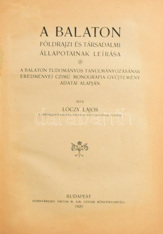 Lóczy Lajos: A Balaton földrajzi és társadalmi állapotainak leírása. A Balaton tudományos tanulmányozásának eredményei czímű monografia-gyűjtemény adatai alapján.