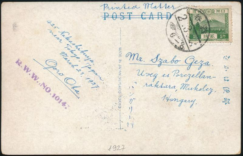 1927 Képeslap nyomtatványként feladva Miskolcra https://www.darabanth.com/hu/498-Gyorsarveres/498.0/Kulfoldi-filatelia-es-postatortenet/Japan~1500119/1927-Kepeslap-nyomtatvanykent-feladva-Miskolcra~II3370846