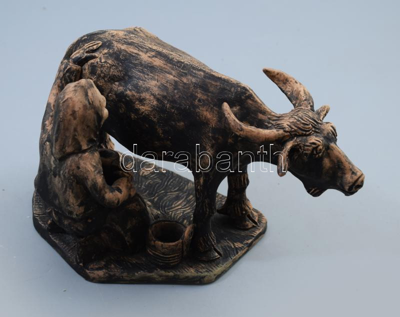 Leírás: Fejő nő kerámia szobor, jelzés nélkül, 22x13 cm