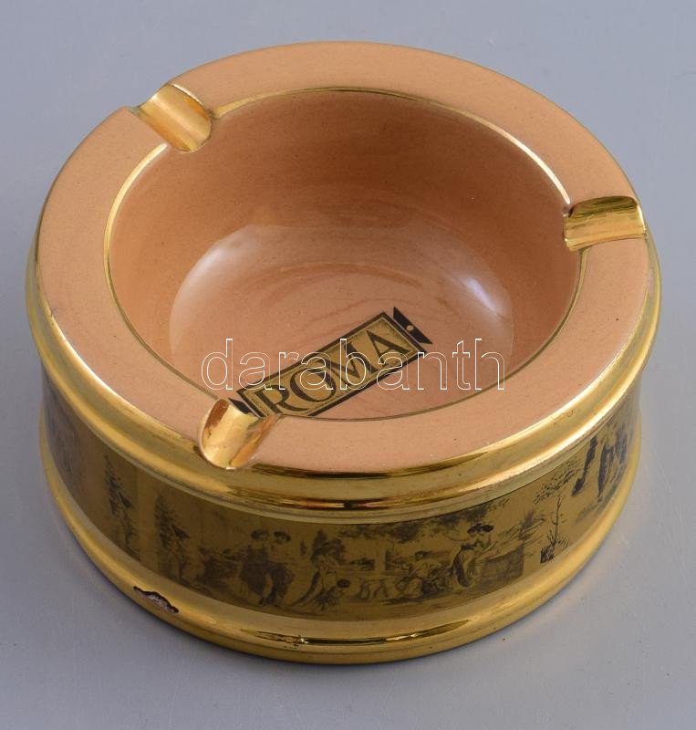 Leírás: Olasz florentine hamuzó, római életképekkel díszített, kis sérüléssel, d: 11 cm