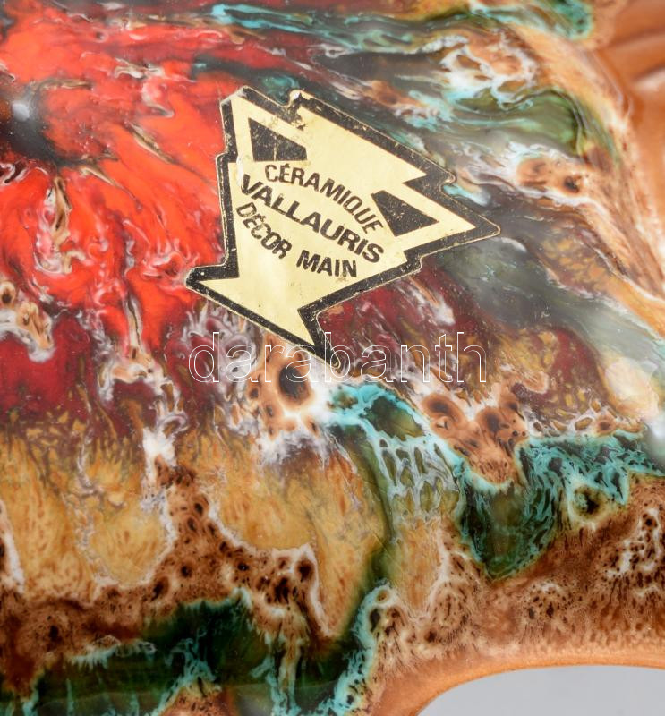 Leírás: Vallauris mázas kerámia hal alakú kínáló, jelzett, hibátlan 45x18 cm