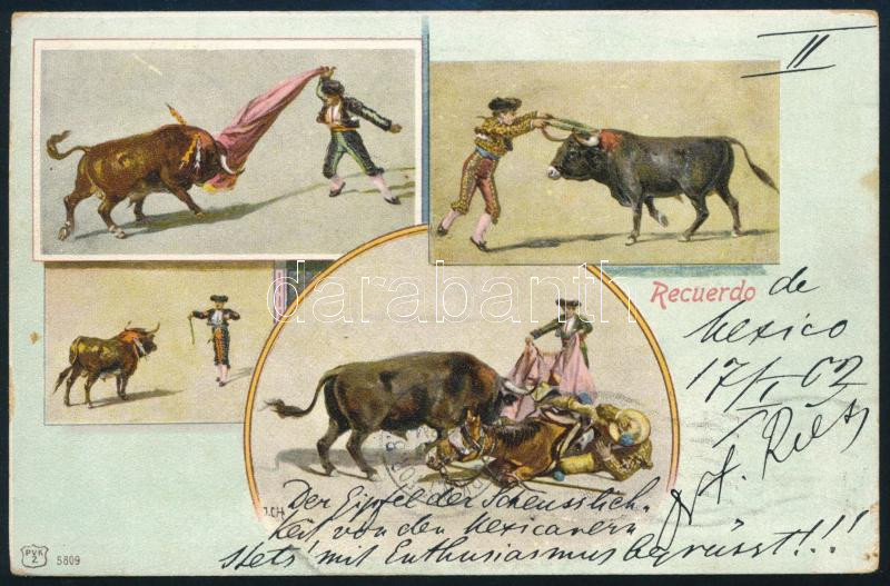 Leírás: Mexico 1902 Bikaviadal képeslap Münchenbe