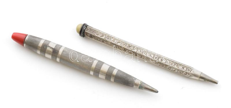 Leírás: 2 darab ezüstözött töltőceruza, sérüléssel, h: 7,5 és 8 cm