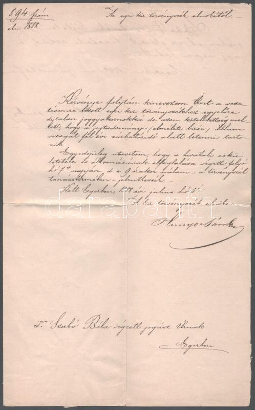 1888 Egri királyi törvényszék által kibocsátott kinevezés bélyegzéssel https://www.darabanth.com/hu/498-Gyorsarveres/498.0/Kulfoldi-filatelia-es-postatortenet/Okmanyok~17/1888-Egri-kiralyi-torvenyszek-altal-kibocsatott-kinevezes-belyegzessel~II3356292