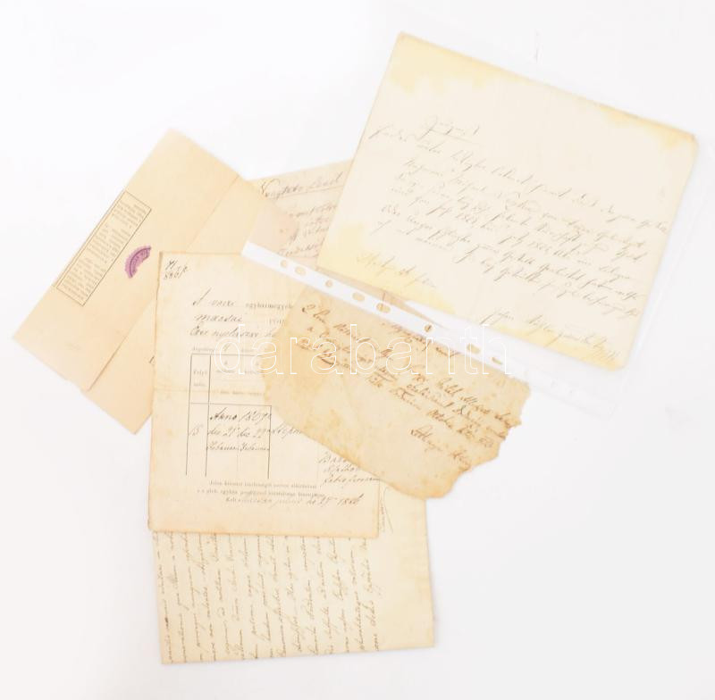 Leírás: cca 1820-1940 régi okmányok, nyugták, segédlevél