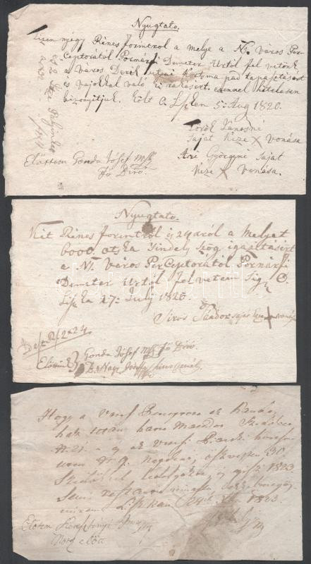 Leírás: cca 1820 Olaszliszka környéki földbirtokosok által aláírt 3 db magyar nyelvű nyugta