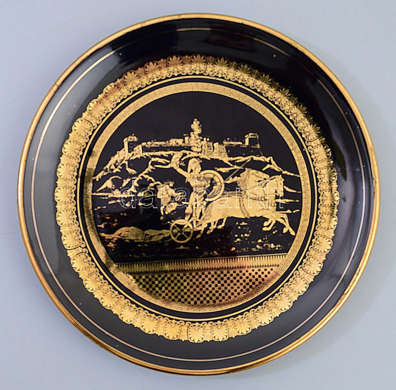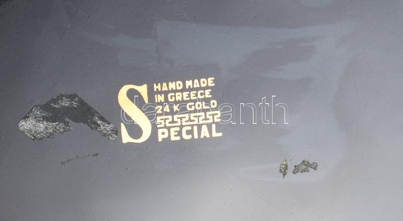 Leírás: 24k arannyal díszített görög dísztál, jelzett, d: 23,5 cm