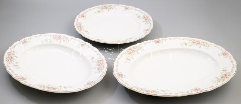 Leírás: 3 db antik porcelán kínáló tál. XIX. sz. matricás, jelzés nélkül, 28-40 cm