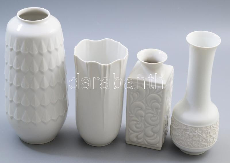 Leírás: 4 db Hutschenreuter fehér mázas váza. 17-23 cm