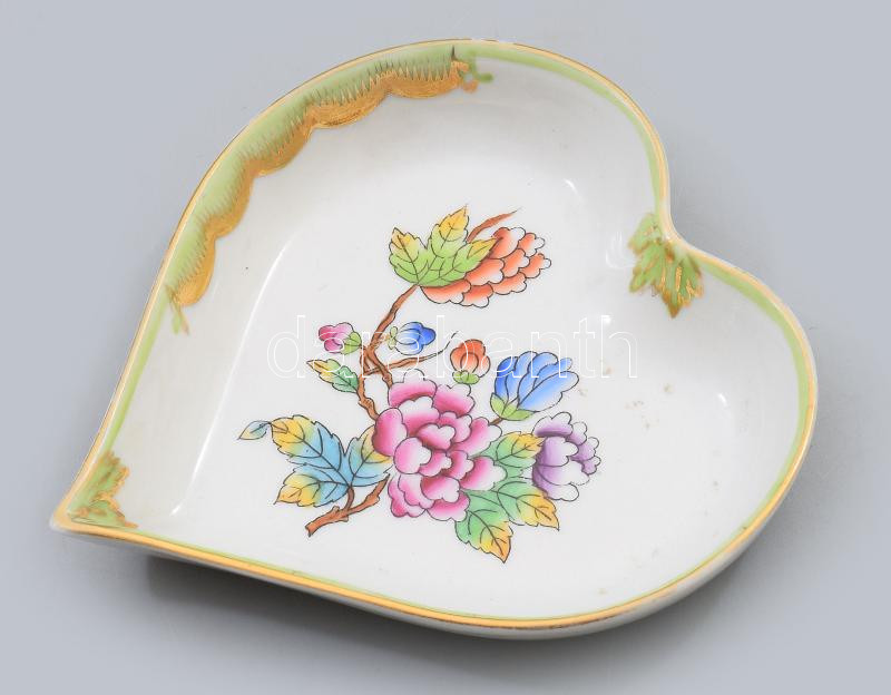 Leírás: Herendi szív alakú ékszeres tálka, jelzett, kis kopással, 10x10 cm
