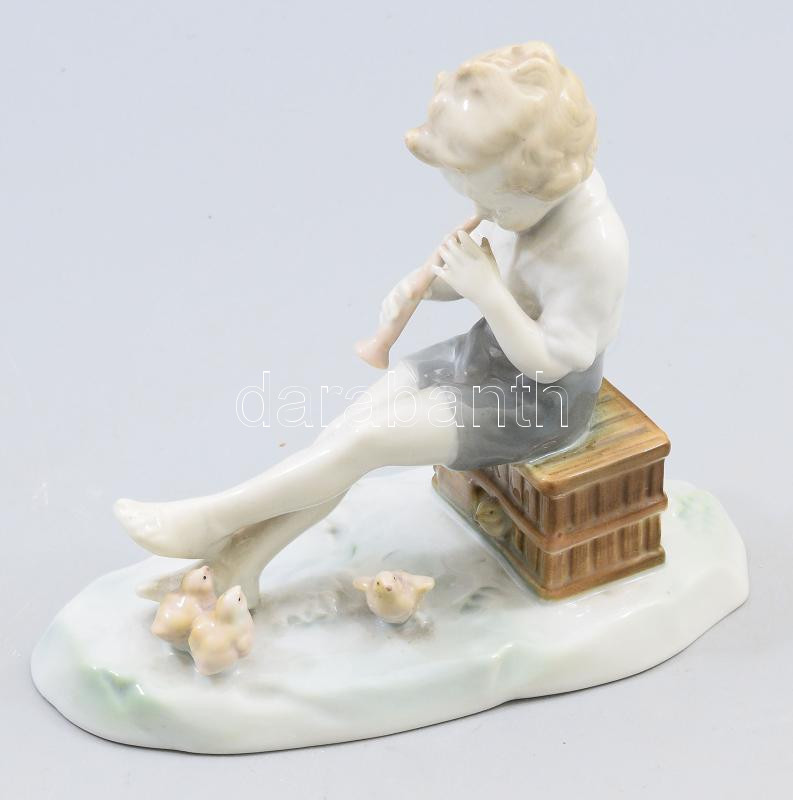 Leírás: Metzler & Ortoff csibéknek fuvolázó fiú, jelzett, hibátlan, 16x14 cm