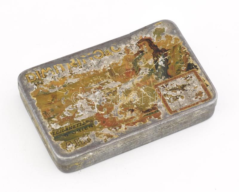 Dimitrino festett fém reklámos cigarettás doboz, kopott, 7x11 cm https://www.darabanth.com/hu/498-Gyorsarveres/498.0/Kulfoldi-filatelia-es-postatortenet/Reklam~500003/Dimitrino-festett-fem-reklamos-cigarettas-doboz-kopott-7x11-cm~II3274971