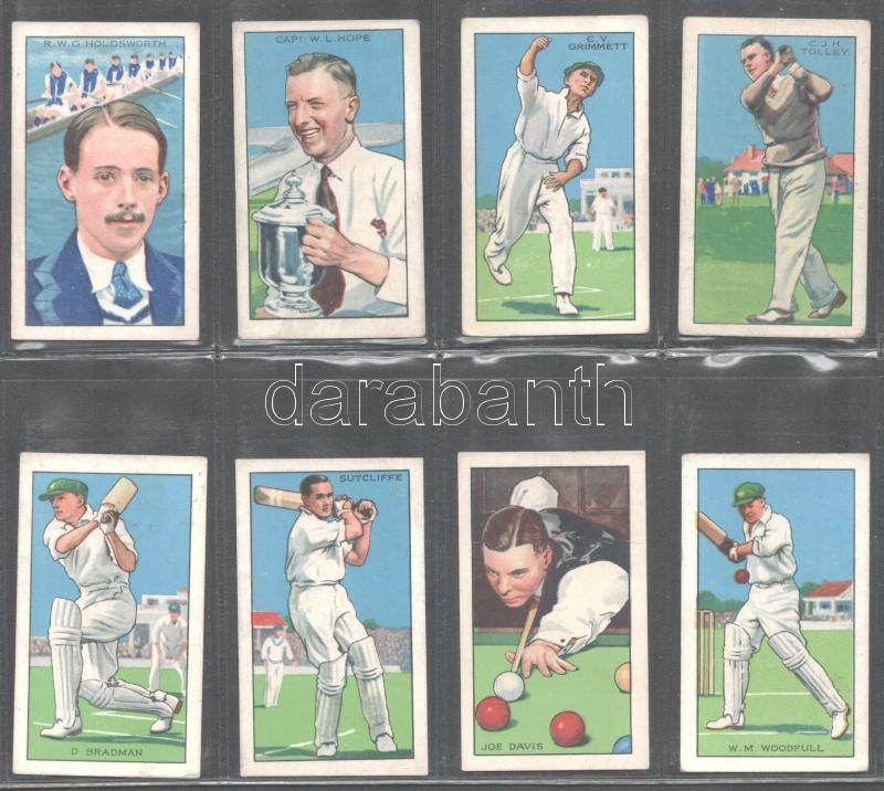 Park Drive Cigarettes brit cigaretta-gyűjtőkártyák, 48 db-os komplett sorozat (bajnokok), albumlapokon / British cigarette cards, complete series of 48 (Champions), in album sheets