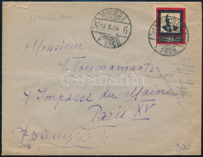 Leírás: 1924 Lenin bélyeg levélen Párizsba / Lenin stamp on cover to Paris