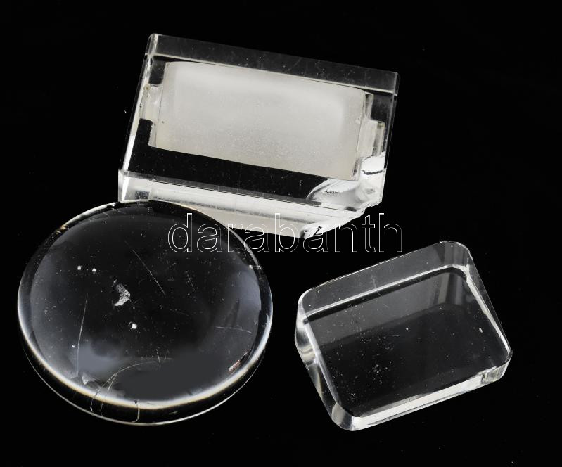 Leírás: Antik postai üveg szett: bélyeghenger (sérült), levélnehezék, üvegtámasz, h: 8,5 cm