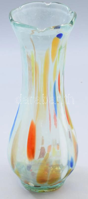 Leírás: Anyagában multicolor színezett váza, m: 28 cm