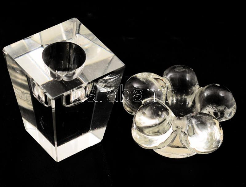 Leírás: Bohemia 2 darab öntött gyertyatartó, egyik címkével jelzett, m: 4-6 cm