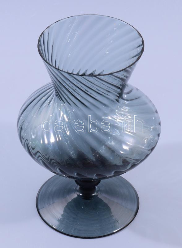 Leírás: Csavartbordás talpas váza. Anyagában színezett, hibátlan, m: 14 cm