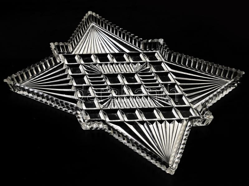 Leírás: Csillagos alakú kristályüveg tálca, 34x24 cm